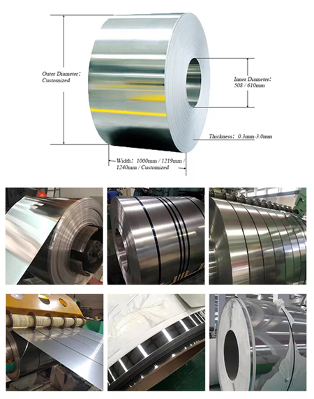 不銹鋼帶(不銹鋼卷):或者叫卷帶,卷料,卷板,板卷,叫法比較多,帶材的硬度也有很多,從幾十到幾百不等,客戶購買前需先確定好用哪種硬度.(8K鏡面光度).卷材寬度不定,有:30mm.60mm.45mm.80mm.100mm.200mm等等.還可根據(jù)客戶要求進行分條.